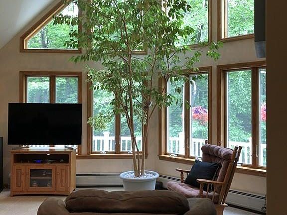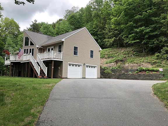 Meticulously maintained one owner home is certain to impress with its well-designed living space, ample storage, and high-end finishes! Just 20 minutes to Greenfield and 10 minutes to Shelburne Falls. Inviting open floor plan. Appealing kitchen with breakfast bar accented by Ashfield stone counters tops and stainless appliances. Geometric shaped windows from floor to 14' ceiling highlight the living room. A generous master bedroom suite with French doors that open on to the deck. Walk-in closet and private master bath with dual sinks and a heated floor. A captivating room on the lower level currently used as an office but could easily be a third bedroom or guest room. The workshop, utility room, and storage area all access to the 2 car garage. Beautiful Ashfield stone wall with a lovely garden. A bonus of the 12x28 storage shed and 9x16 Shelter Logic enclosure. Set in an elevated private setting to enjoy gardening or sit on the deck and take in the peaceful sounds of nature.