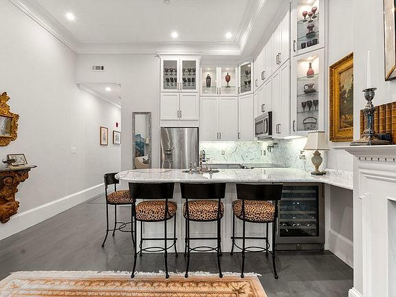 Sophisticated, quality construction on the  coveted  sunny side of  Marlborough Street. Convenient  parlor level  2 bedroom  located in a 2010 restored  townhome with parking. The living room highlights include  dramatic moldings, gas  marble surround fireplace, high ceilings, and south facing bay window.  The open  custom designed kitchen features floor to  ceiling cabinets backlit for drama, Bosch/ Fisher Paykel appliances, pot filler, breakfast bar with  stone counters and backsplash. Primary bedroom features a  wall of windows and two generous closets. Adjacent 2nd bedroom ideal for guest, office, nursery or den. Luxurious marble  bath features glass door tub enclosure.  Gorgeous hardwood floors throughout, central a/c, in unit laundry. Direct access deeded parking and additional private storage included in the price. Building is professionally managed and 4 out of 4 units are owner occupied. Live in the heart of Back Bay!
