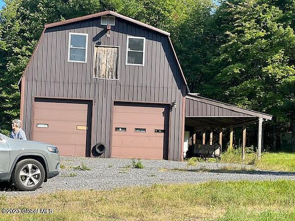If you value privacy, this home is situated on 44.10 acres of land. It features a separate 2 story garage that can hold up to 7 cars making it a dream for car enthusiasts. Overhead 10' door for RV plus 3 add'l overhead doors. Also has a car lift. 12'.5' ceilings The house includes an area for approx 4 cars plus ground level garage and family room, along with 2 bedrooms,1 bath, office. The remaining rooms boast an open concept design. Add'l 9x5 shed 35 acres of woods. As a bonus there is a separate 100'x125' adjacent lot with trailer included. More amenities but too many to mention. There is a National Grid easement.