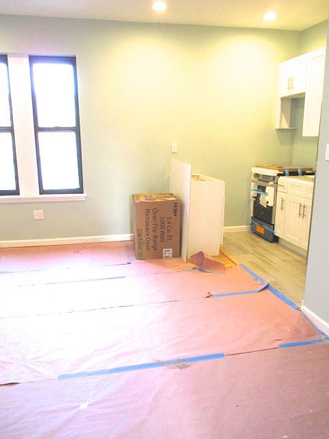 RENT STABILIZED! Renovated and Bright 1BR apartment on the top floor (4th floor) walk up in the building with laundry. Living room with a nice open kitchen. Stainless appliances. The bedroom might fit a queen size bed. Two large closets. An additional closet is in the hallway. Renovated bathroom. Pets are on approval. Heat and hot water are included.