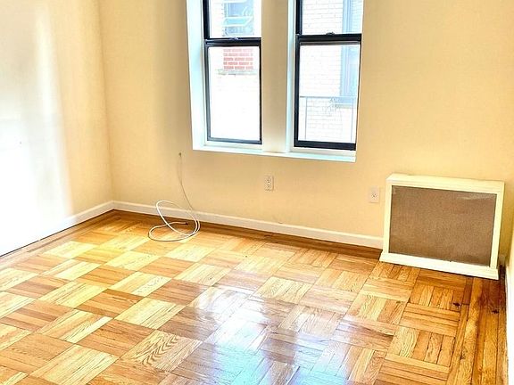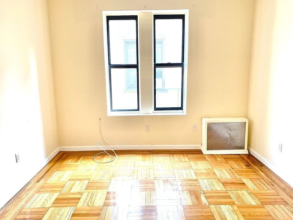 NO FEE! RENT STABILIZED! Bright and renovated 1BR apartment is located on the top floor (4th floor walk up) in the building with a laundry. Nice separate kitchen, large living room, bedroom might fit a queen size bed. Nice view from the bedroom. Renovated bathroom. There are two closets in the apartment. Heat and hot water are included. Pets are on approval.