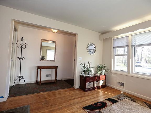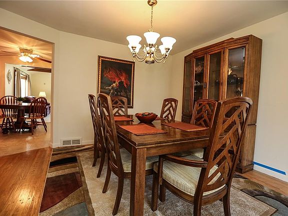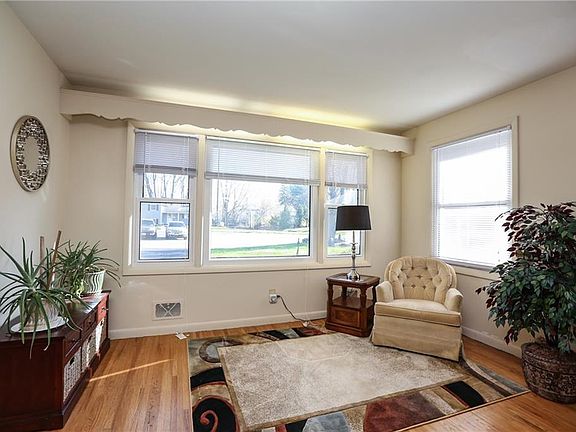 Great Location! This 3 bedroom ranch situated on a cul de sac location nearby to shopping, schools, hospitals and expressways will be sure to impress! Updated eat in Kitchen with large pantry, recessed lighting and appliances included. Large front room can be Living Room/Dining Room or one large living space. Updated Bathroom. Knotty pine breezeway/porch between house and garage. Large Family room addition boasts beamed cathedral ceilings and provides awesome living space. 3 generous sized bedrooms, Basement with Rec Room and bar and laundry hook ups. Yard with mature trees and shed with electric service. 2 car attached garage. Replacement windows, central air, newer mechanics. Don't wait!