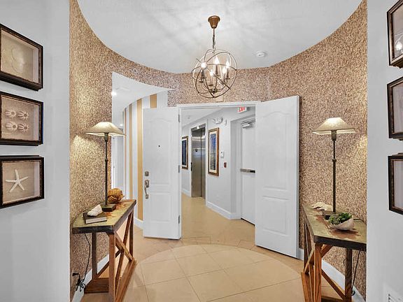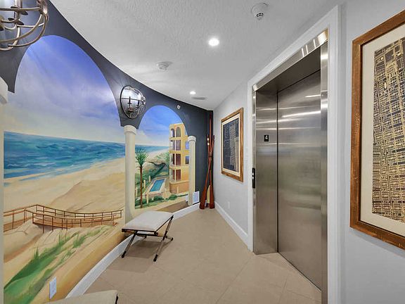 This beautiful, furnished, luxury oceanfront living will not disappoint! Amazing views of the Atlantic Ocean & ready for entertaining. This home is beautifully appointed & updated with stunning attention to detail by the interior decorator. Custom designed mural & shell wall covering in entryways. Restoration hardware details surround you w/ fans, lighting, dining room table/set, and owners bedroom. Custom built wall unit in living room w/ fireplace, a murphy bed & built- ins in guest room, table in kitchen, & desk in 4th guest room. Spilt floor plan, two of three additional guest rooms have ensuite baths. All bedrooms have oversized walk in closets. Only 4 residences in the gated building with elevator access from the private 2 car garage. Pool, community room, and privacy await you.
