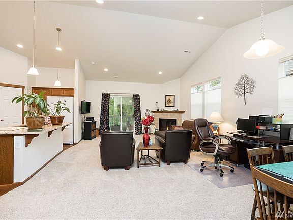 No wait for this perfectly situated 1,526 SF 3 BD 2 BA home in 55+ Woodside to be completed. Backs up to green belt and directly across the street from the lodge and mailboxes. Wide open Laurel floor plan (sold out in community), Granite kitchen, vaulted ceilings, top down bottom up window blinds throughout, handicap accessible, upgraded carpet and pad, brushed nickel finishes, quitting insulation, garage man door and a back porch overlooking the quite green space behind. Maintained yards by HOA