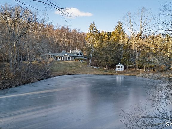 Beautiful Post and Beam design home, Tranquil setting nestled on 25+ acres with pond,babbling brook, and hiking trails nature at it best. This home has a unique design spoiling you with Private Hot tub, sauna, and solarium leading to outdoor patio with fireplace overlooking the pond side. Dramatic open layout with Swedish style stucco fireplace. This design offers the ability to have 2 or 3 bedrooms there is a full in-law set up, Ample expansion room in the design. So nicely appointed with dramatic windows and beamed ceilings throughout MUST see