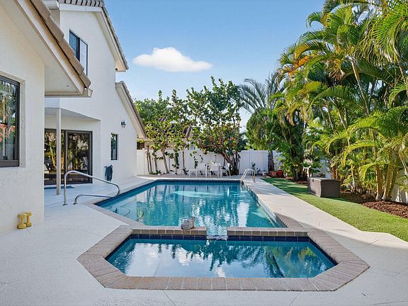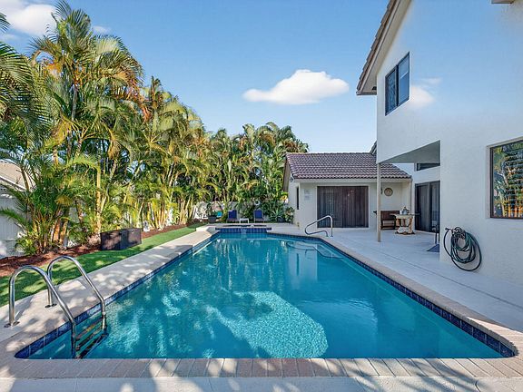 WOW! Stunning, fully renovated two-story estate home located in East Boca's highly desirable Hidden Valley. This 3 bedroom home with a loft--perfect for a home office--features a double-entry front door and a spacious circular driveway.The bright, open floor plan offers vaulted ceilings, Palladian windows, elegant plantation shutters, and abundant natural light, creating an inviting and airy atmosphere throughout.Enjoy seamless indoor-outdoor living in the private tropical backyard oasis, highlighted by a huge saltwater pool with a waterfall hot tub and spa--ideal for entertaining or relaxing in total privacy. This home is loaded with upgrades, including hurricane-impact windows and doors, a smart security system, custom closet systems, recessed lighting, and tile and luxury vinyl flooring throughout.