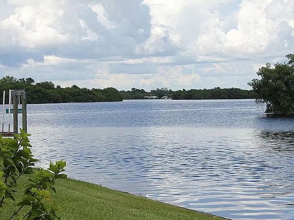 Waterfront home with water views abounding in this two bedroom/two bath home in the Orange Harbor gated community on Caloosahatchee River. 1310 square feet. Patio and dock face the canal waterway, as well as the Caloosahatchee River, while the master bedroom has a bonus room that looks over the Caloosahatchee River. Second bedroom also faces the river. Large walk-in closet in master bedroom. Shed has been expanded in size, now 8' by 18.5'. You will often see dolphins, manatees, otters and water birds. Lot rent is $924 monthly with an option to purchase the land. Monthly fees includes trash removal, recycling, water/sewer, lawn mowing and edging and all amenities. Orange Harbor is a 55+ resident-owned community, right off I-75 and located close to shopping, restaurants, the airport and beaches. Community amenities include pool, clubhouse, dog park, brand new fitness center being built, basketball, bocci ball, new pickle ball and shuffleboard. Fun activities and games always going on. One of the few places that allows pets! Community has two boat ramps.