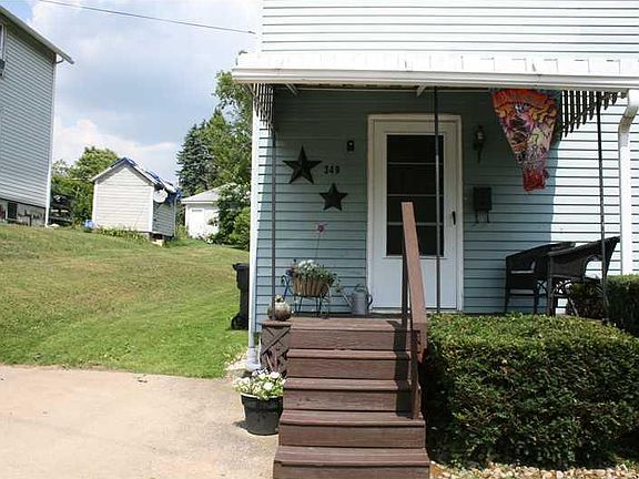 Big beautiful 3 bedroom, 1.5 bathroom house in a small, friendly town. Most original wood work throughout the home, including a gorgeous front entry/foyer. A lovely transom graces the back door. The cozy kitchen has the original custom made cabinetry with a pass through to the dining room. The living room includes a gas burning fireplace which heats throughout the house. There is a huge attic with tons of potential and a spare room in the basement. Plenty of space for outdoor entertaining with a ground level patio and spacious back porch that flow out into the large back yard. There is also a small front porch as well. The driveway provides space for 3 cars for off street parking. New metal roof, water heater, water softener, full house carbon filtration, refrigerator, stove, dishwasher, flooring and freshly painted. Outdoor grill hooked into natural gas.