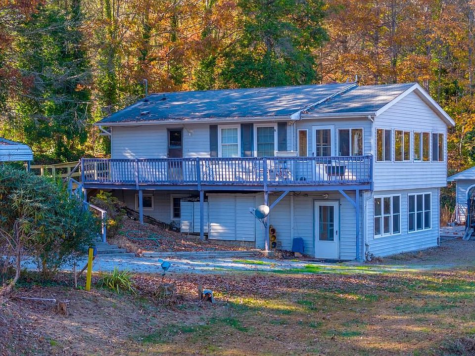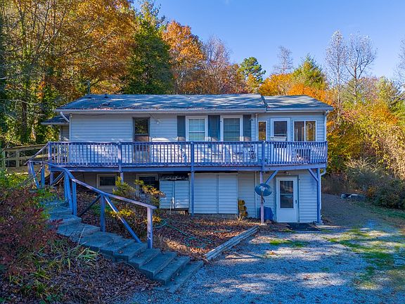 VIEW VIEW VIEW! Unbelievable view in this price range. Unrestricted property with end of the road privacy. Home has everything you need with 2 bedrooms, (used to be 3) 2 bathrooms, built out basement with separate living quarters. Kitchen, primary bedroom, in-suite bathroom, family room and three season porch on main level. One bedroom, one bath, family room, three season porch on basement level. The access is currently blocked between each level. Basement level has outside entrance to gain entry. Home could use some good old fashioned elbow grease (deep clean). Price reflects this and home is being sold AS-IS. No repairs will be done. Central heat and air. Propane fireplace on main level. Separate detached hobby/store building. And two detached carports. One in front for a car and other behind house with items stored in it. Ramp to main level and fenced in yard for pets. Stand-by generator. Two 100 gallon propane tanks rented. Currently has Frontier internet. View from decks and enclosed three season rooms on both levels are phenomenal. Could be used as short term rental. Excellent location with easy 5-10 minute drive to everything Macon County has to offer.