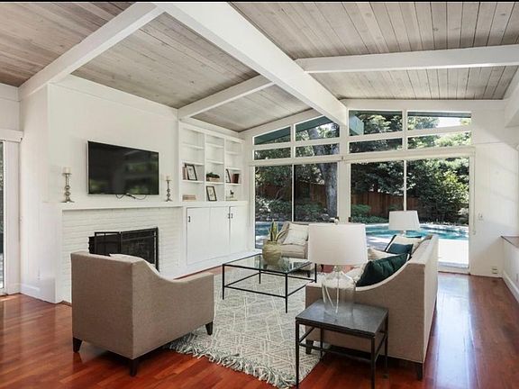 Peaceful, private, comfortable family home set among oaks and eucalyptus high above Walsh Road in West Atherton. Home is Craftsman in style and sits on three levels set into the hillside: Living room with fireplace, modern kitchen with newer appliances and dining room/family room adjoining the outdoor area; four generously sized bedrooms and two full baths; large master with fireplace, private deck, large bathroom with huge soaking tub and walk in closet. One acre lot with pool and patio perfect for outdoor entertaining.Walkways throughout the lot allow for peaceful wandering under the oaks. No smokers. Pets require additional deposit.