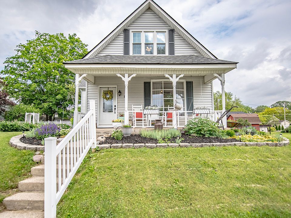 This charming home nestled in a friendly lakeside town offers the perfect blend of classic charm and modern updates. As you step into this delightful abode, you'll be greeted by a cozy and inviting atmosphere. The main floor features a spacious owner's suite, providing convenience and comfort. With four bedrooms and two full remodeled baths, there's plenty of room for the whole family or guests. Prepare to be amazed by the recent upgrades throughout the home. New windows, floors, furnace, and A/C ensure optimal comfort and energy efficiency all year round. You'll also appreciate the new water heater and Bluetooth water softener, adding convenience to everyday living. Entertain guests or simply unwind in the gorgeous backyard, complete with a large wooden deck perfect for hosting barbecues or enjoying quiet evenings under the stars. The strawberry and rhubarb garden adds a touch of nature's bounty to your outdoor oasis. Relax on the cute covered front porch and take in the picturesque landscaping that surrounds the home. With meticulous attention to detail, the landscaping enhances the curb appeal and creates a welcoming atmosphere. Location couldn't be better! Situated just steps away from Morse Reservoir, parks, and Jackson Street filled with restaurants and shops, you'll have everything you need right at your fingertips. Plus, being on the parade route for all holiday parades means you'll have front-row seats to the festivities. Embrace the laid-back lifestyle of this lakeside town, where golf carts are a common mode of transportation. Ditch your car and explore the area on a golf cart or enjoy a leisurely stroll to nearby attractions. Don't miss out on the opportunity to make this exceptional home yours.
