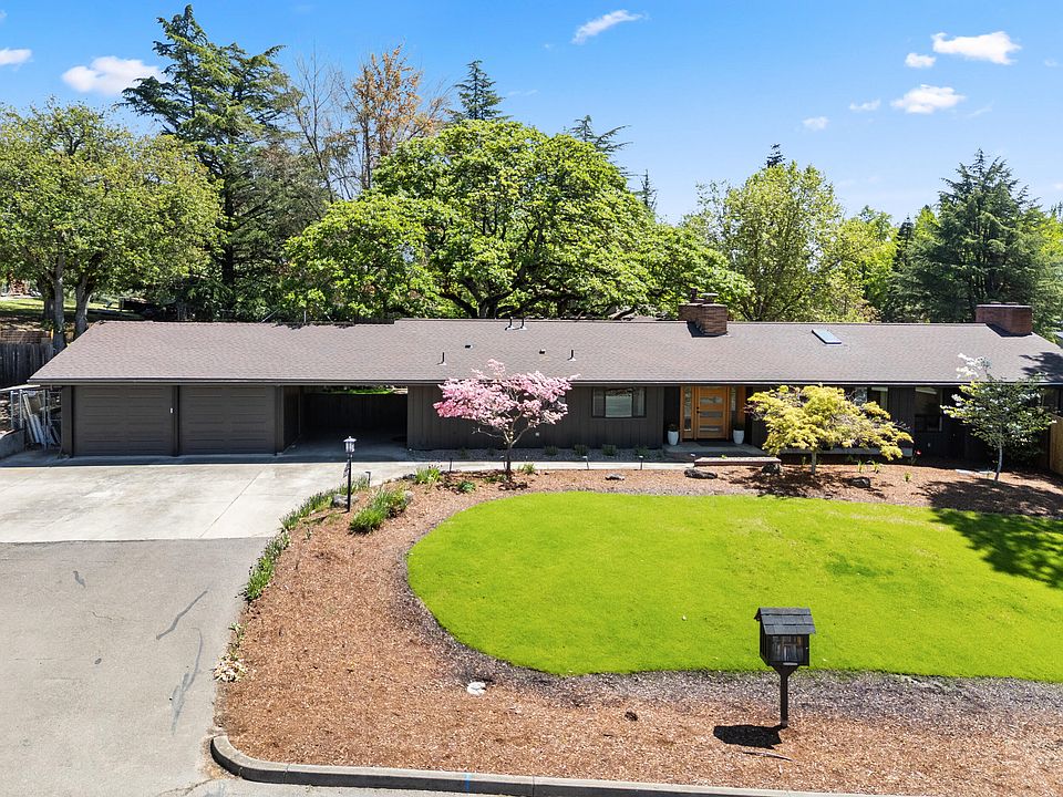 Old East Medford corner lot home for sale! Desirable homes on large lots in East Medford don't come along often. This ranch-style, 4-bedroom, 2.5-bath remodeled home sits on a large lot measuring over 3/4 of an acre. Featuring hardwood floors throughout, vaulted ceilings, a spacious kitchen, dining room, living room, and more! The kitchen boasts granite countertops, high-end appliances, island with a sink. Kitchen, laundry, 1/2 bath have heated floors. Two gas fireplaces and one wood burning. Outside, you'll find a replastered in-ground pool with new decking. A large garden area for those with a green thumb. There's a two-car attached garage plus a separate four-car detached garage with a loft. RV parking with 50-amp electrical service and two dump stations. This house truly has it all!