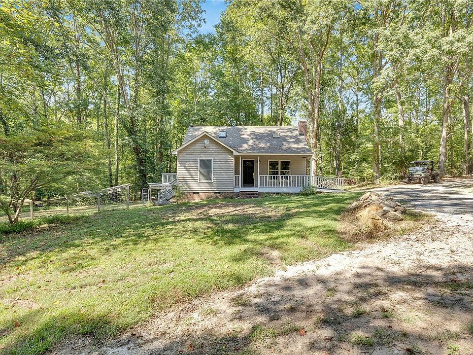 The house is a simple Two bedroom one bath bungalow with open living room, dining room, kitchen, huge family room wrap around back deck. The loft style second bedroom could certainly be a great office or rec area. This house would make a wonderful caretaker house or guest cottage while you pick out a high knoll and build your forever home among this wonderful tranquil ' Freehaven Farm ' !!!!!!