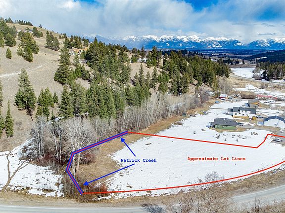 1.5+ acre lot with 350+/- feet on year-round Patrick Creek. This property has a shared well in place, and septic approval. If you would like to have a country feel, but still be close to town, this property fits the bill. Power and phone to the property, light covenants, and even views of the Swan Mountain Range to the south. Call Zac Andrews at 406-250-6160, or your Real Estate professional.