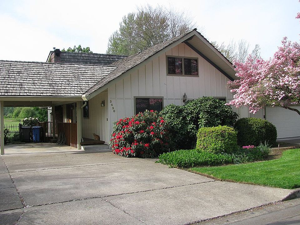 Waterfront Retreat in the City! 0.27 acres w/ southern exposure to Canoe Canal frontage, Alton Baker Park & Pre's Trail. Wonderful view of Hendricks Hill & Spencer's Butte. Travertine floors, vaulted ceiling, exposed beams, 3 decks, 2 garages. 2nd story landing overlooks large living rm w/ fireplace. Kitchen w/ quartz counters & eating bar. Private master ste w/ french drs, WI-closet & balcony. Carport, gazebo, 2nd garage.
