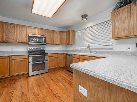 Updated two story home in The Springs Ranch neighborhood. This home welcomes you with beautiful hardwood flooring in the formal 2 story entry. An abundance of windows, make it light and bright. throughout. The formal living room flows into the dining room with easy access to the kitchen for seamless entertaining. The open and spacious kitchen has solid surface counters and loads of cupboard space, stainless steel appliances and a large window to view the beautiful backyard. The eat in kitchen nook leads out the french doors to the back deck. The cozy great room with a gas fireplace and vaulted ceilings makes for a great gathering space. This level finishes out with half bathroom, laundry room and an attached two car garage. Upstairs provides a spacious primary retreat with five piece ensuite bathroom. Upper floor rounds out with a full bathroom and an additional three bedrooms. Spacious finished basement has more living room or rec space and a full bathroom. Fully fenced backyard has large deck for entertaining and mature trees for shade.