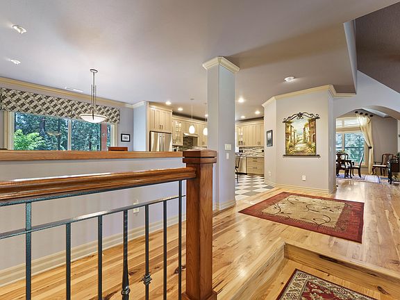 Don't delay setting up your tour of this beautiful home in the park-like setting of Awbrey Glenn Community. Enter through the Mahogany front doors and discover timeless finishes in a multitude of living spaces inside and out. Beautiful hickory hardwoods flow through the main level. A gourmet kitchen features all you'd expect in a home of this quality. Stunning spacious primary suite with a luxury spa-like bathroom. The second bedroom and full bath are also on the main level. There is 3rd bedroom or flex space on the main level. The lower level has cozy, relaxing areas with more bedrooms, another full bathroom, and a bonus recreation room with built-in cabinets. Home is topped off with plenty of lower-level bonus storage areas, a large garage