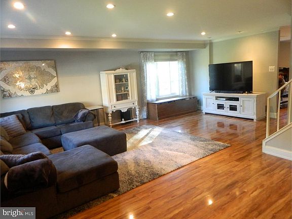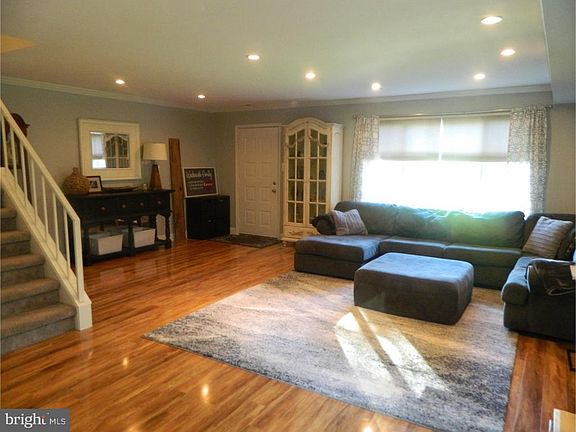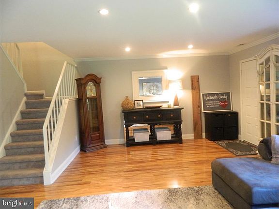 There are so many things to love about this special home in Village Shires! Topping the list is the fabulous location of this end unit which is surrounded by open space. This spacious home has been lovingly maintained, updated and beautifully decorated. The large and inviting living room has gleaming wood floors, fresh paint and is enhanced with crown molding and high-hat lighting. The updated kitchen with breakfast bar includes dishwasher, refrigerator, self-cleaning oven, hard-surface counter tops and decorator lighting. There is a large dining area that can also be used as a family room. Sliding doors lead to the rear yard with patio for outdoor dining and entertaining. Conveniently located off of the kitchen is the remodeled powder room and laundry room. The second floor includes the master bedroom with new, plush wall to wall carpet, walk-in closet and sitting area. Two additional bedrooms also have new wall to wall carpet and double closets. The hall bath has been freshly painted. There is accessible attic space for extra storage. More to love... new roof, new HVAC and replacement windows. Enjoy the wonderful amenities of this lovely community which include 3 swimming pools, tennis, basketball, playground and clubhouse along with neighborhood shopping.
