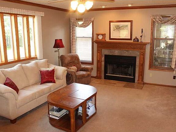 Wrap around covered front porch welcomes you to this beautifully maintained 3 bedroom, 4 bath (2 full & 2 half) 2-story home in a great neighborhood. The updated kitchen is sure to please with wood flooring, newer granite countertops, tiled backsplash & stainless steel appliances. The kitchen opens to the dining area and sunken great room with crown molding & a cozy fireplace. Enjoy nature in the vaulted 3 season's room with newer carpet and easy access to deck & yard. Formal dining room/office. Vaulted king sized master suit with fireplace, 2 closets & private bath. Main floor laundry, spacious bedrooms, finished lower level family/rec room, half bath, den/exercise room, storage & irrigation system. Upgrades to enjoy include: Fan/light fixtures, granite countertops, stainless steel appliances, mitigation system, newer water heater & sump pump. Wonderfully landscaped & close to schools, parks & swimming pool.