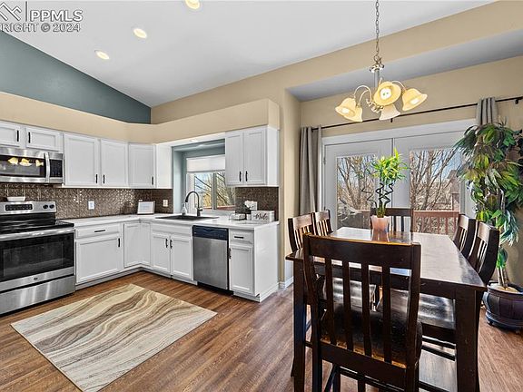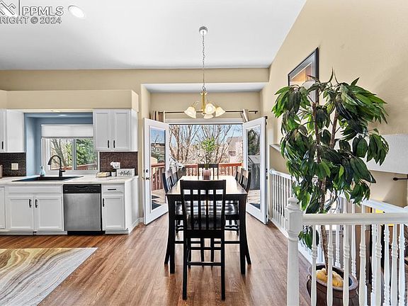 This beautifully maintained 4 bed, 4 bath home has updates galore!! The main level features newer LVP flooring, soaring ceilings and light filled living area that flows to the kitchen and dining nook. Updated cabinets and appliances grace the kitchen. Dining area walks out to a large deck, perfect for summer BBQ's and entertaining. Keep cozy all winter long with a gas fireplace in the lower level family room, which also walks out to the lower level of the deck. The Primary bedroom upstairs has vaulted ceilings, nice closet space and and a gorgeous UPSCALE CUSTOM BATHROOM that was just remodeled! Two other bedrooms upstairs are nicely proportioned with newly refinished hardwood floors. The full bathroom on the upper level was also REMODELED. The basement area offers yet another living area that walks out to the patio PLUS a bedroom and a NEWLY REMODELED BATH with a walk in shower! NEWER HVAC AND A/C installed in 2020. Almost all windows were replaced in 2021 with energy efficient windows. Carpet and plush padding installed in 2020 in this pet free home. Newer interior paint. Laundry area and half bath are located off the lower level family room. NEW ROOF & gutters are scheduled to be installed soon! Large fenced yard perfect if you like to garden or have pets. This 4 level home has space for everyone to spread out and offers a lot of square feet while still maintaining a cozy vibe! Conveniently located close to shopping, parks, restaurants and ammenities. Minutes to the Powers corridor and close to Space Command, Peterson AFB and Fort Carson. PROFESSIONAL PHOTOS COMING SOON