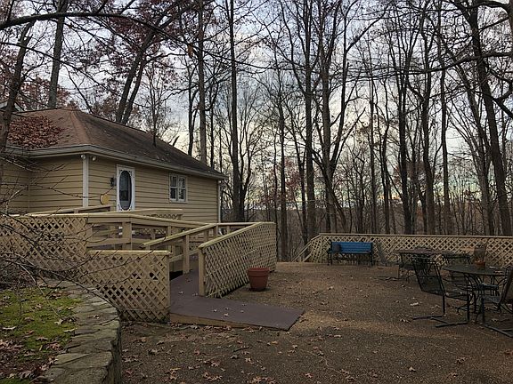 Location location location! Hard to find Traditional Ranch with finished basement. Detached Garage with canning kitchen and apartment above. Home has hugh Great Room Dining Room combo 20x30"with wide plank hardwood floors. Large Kitchen with tile floor and island and breakfast area. Sun room, Large Master suite. 2nd large bedroom on main floor. 3rd large bedroom on finished terrace level. Terrace level has separate kitchen and laundry and large activity room 20x30. Main floor also features office/library. Property is wooded with mostly hardwood trees. Large garden spot. Small barn. Creek on property as well. Location is great close to 400, 369, Highway 9 but so much privacy. Daughter is Licensed Real Estate Agent.