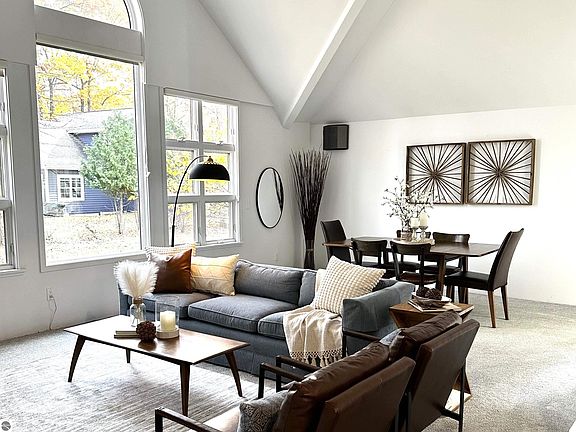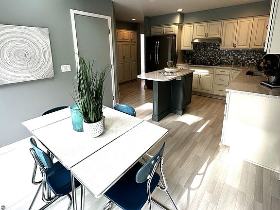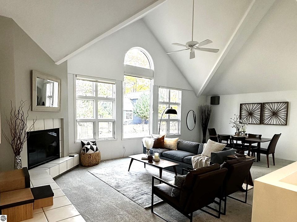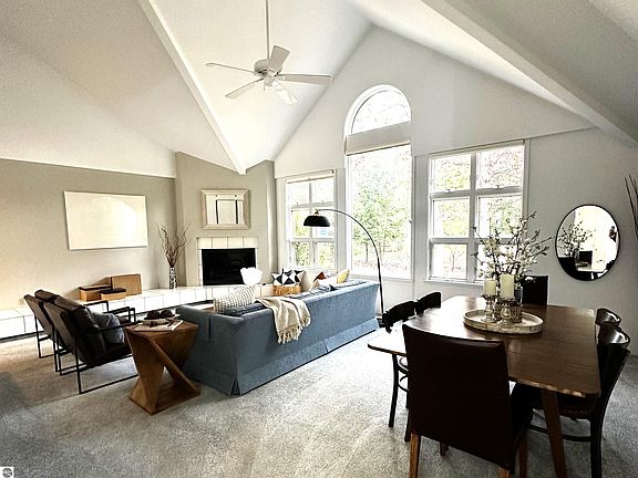 Just minutes from downtown Traverse City and the sparkling shores of East Bay, this beautifully refreshed 3-bedroom, 2-bath home in the desirable Holiday Hills neighborhood blends Up North tranquility with in-town convenience. Recent staging gives the home a fresh, modern look—highlighting vaulted ceilings, abundant natural light, and a cozy gas fireplace.The updated kitchen features stainless steel appliances, quartz counters, and ample storage, and opens to a private side deck—perfect for morning coffee or evening gatherings. The primary suite includes a walk-in closet, spacious shower, dual sinks, and a makeup vanity in the en suite bath, while the partially finished lower level offers flexible space with endless possibilities. Enjoy year-round comfort with central air and peace of mind with a whole-house generator. Plus, you’ll have easy access to everything Traverse City has to offer—from biking the nearby TART Trail to exploring local wineries, beaches, ski hills, and parks. Stylish, refreshed, and ready to welcome you home.