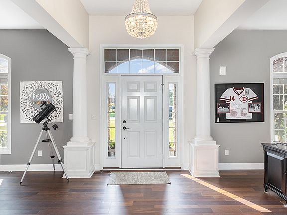 Discover your dream home in the serene beauty of Makena Estates! This exquisite full brick ranch home awaits you on a gorgeous 1.12 acre lot, boasting a spacious level yard with an invisible fence. You will find a perfect setting for a future pool while relishing the utmost privacy. As you approach, admire the stunning brick/stone exterior complemented by the meticulously landscaped surroundings. Step inside and you will instantly fall in love with the open floor plan. Marvel at the rich Brazilian hardwood floors throughout. The 11' ceilings add to the grandeur. The kitchen is a culinary masterpiece, featuring SS appliances, double oven, electric cooktop and spacious pantry. Escape to the primary suite with en-suite bath strategically placed on one side of the home to provide privacy. A unique hidden gem awaits within the suite-a secret storage room concealed behind a cleverly designed mirror. During chilly months, cozy up to the wood-burning stove and save on your electric bills. The expansive unfinished basement offers endless possibilities. Step outside to the large composite deck with built in hot tub and enjoy the views in seclusion!