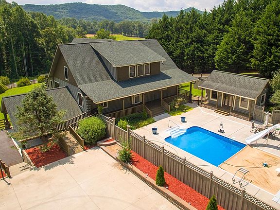 Beautiful home in the Western NC mountains on 3 acres. This home has too many upgrades to list them all. After purchasing the home the seller has truly made this into a family paradise. Very spacious, timber frame great room with high ceilings, 5 beds, 5 baths, Full kitchen and laundry on main level and in basement as well. Geo thermal heating as well as central, whole house generator, awesome firepit area, outdoor fireplace, yard fenced in for the 4 legged family members. Gorgeous pool area, major upgrades such as heat, water slide and an automatic retractable cover that goes on and off in seconds, 3 car garage with bonus room. Paved/ concrete access, This is a must see property!!