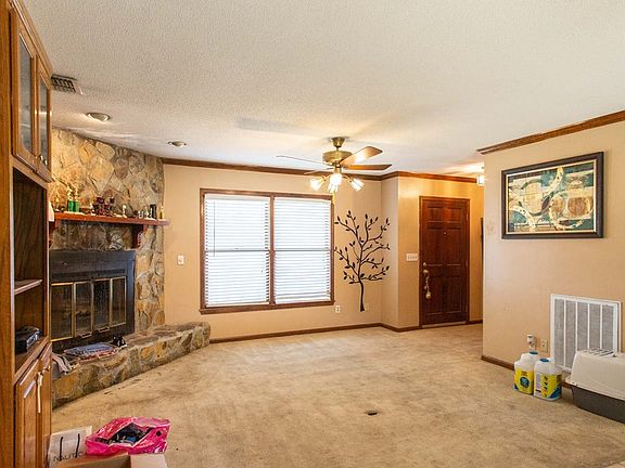 This 4 bedroom, 2 bath house can be found on a corner lot in a great neighborhood close to town! The open concept floor plan is perfect for offering a spacious area to gather and hang out with family and friends! You'll love the corner fireplace with floor to ceiling stone and wooden mantle. The bedrooms are split with the owner's suite being on one end and guest rooms on the other. The 4th bedroom option has doorways from the front foyer and kitchen and could make a great office or playroom! With a few cosmetic touches and a little elbow grease this place will shine and be your dream home! The back yard is fenced with wood privacy fencing.
