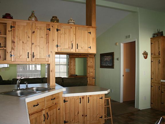 Pride of ownership shows in this 1996 Cavco. Ground set 3BR, 2BA home that is perfectly maintained and move in ready. Split bedroom plan, open kitchen/living room, custom cabinets, gas range, appliances, new roof, and workshop/storage. Gated Adult community with low association fee. Heated pool, recreation center, game room, exercise room, shuffle board, hiking trails, and more.
