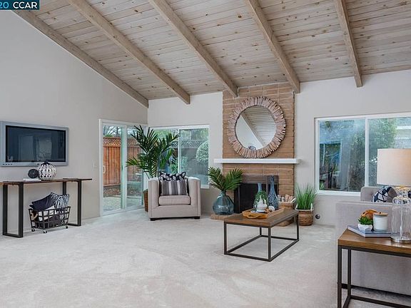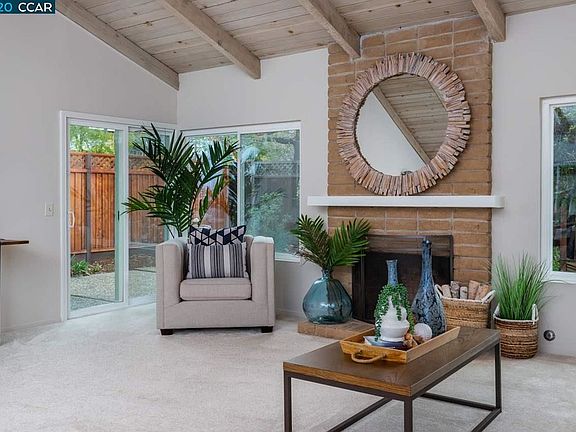 Ygnacio Hills single family home in small court. Front entry opens into large living room with high vaulted beamed ceilings, gas fueled fireplace, new carpet & paint. Dual pane windows let in lots of natural light. Glass slider door opens onto the back patio. A classic white kitchen features an eat in area surrounded with windows to the front yard & street side, fresh paint, new flooring, lots of cabinets. Lower level family room has wet bar, 1/2 bath, glass slider door to backyard, laundry room & door to the 2 car garage. Upstairs has master bedroom with walk-in closet & bath, and 2 quest bedrooms, a full size bathroom with shower over tub. Guest bedrooms have glass slider doors which open onto exterior balcony. Close to trails,shopping,freeways,BART, nearby Concord & Walnut Creek.