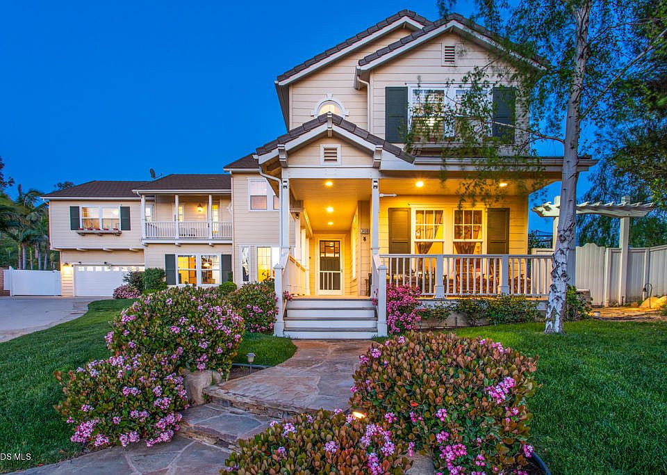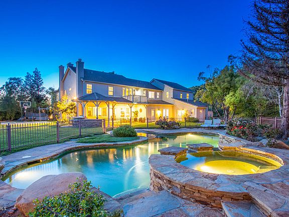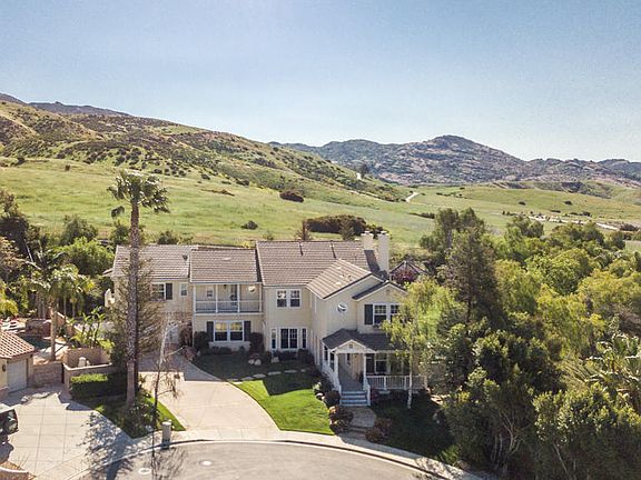 One-of-a-kind Silverthorne Residence 6 w/guest house featuring 6 bedrooms, 5.5 bathrooms, 5477 sq. ft. of living space, sitting on a 36,060 sq. ft. private view, cul-de-sac lot. An entertainer's home with a wrap around front porch, gated RV parking, a private entrance to the guest house hosting a bedroom, living room, bathroom and kitchenette, a large downstairs game room, a mud room, a 4-car tandem garage, a gourmet granite island kitchen w/breakfast bar, nook, walk-in pantry, Butler's pantry and more. The resort-like backyard hosts a gated Pebble Tec beach entry pool with a spill-over spa, a gazebo, sweeping lawns, a playset, a trampoline, a sport court w/a basketball hoop and views of the Simi hills all around! There is a covered patio w/a Lynx BBQ and island bar. Lots of fruit trees, a rose garden and more. One bed/bath downstairs, Jack & Jill bedrooms up, an en suite bed/bath up in addition to an office with a French door entrance. The spacious master suite offers a retreat, French doors to a balcony with a view, a travertine master bath with a jetted oval tub, dual vanities and a huge walk-in closet. Nearby hiking trails, parks, shopping restaurants, award-winning schools, and just a short distance to the 118 Fwy for the commuter. Must see!