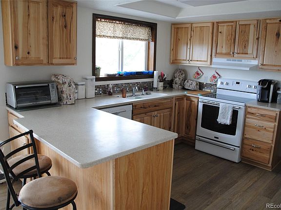 Just the place you've been dreaming of! This quaint property is approximately 7 miles from town, and has 2.5 private acres for your enjoyment. The home has been very well maintained, and just received a new kitchen with beautiful hickory cabinets, composite countertops and wood-laminate flooring. You will love the open space for entertaining guests! The master suite has a beautifully tiled shower, and two closets! Step outside onto the deck and enjoy your peaceful view of the prairie. The two shop buildings are perfect for storage, or even a workshop for your hobbies. Come take a look at this lovely country home today! Kitchen appliances are included. Clothes washer & dryer in the home will be replaced, and included.