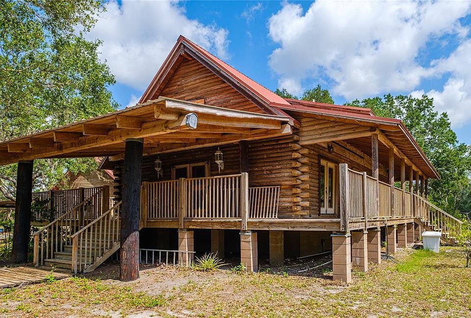 OVER 14 ACRES OF LAND, ready for you to call home! Come experience country living at it's absolute best! This property has it all, a cozy cabin home, detached enclosed three car garage, along with THREE carport areas that will hold ALL the toys. Bring the boats, RV's, machinery, horses, etc! The property is conveniently located off SR-70, and the entrance is very private. Once you pull in the gravel drive, the road will wind you back through a wooded path to the home. You will be greeted by a well built and maintained cabin, along with three detached buildings. When you come through the front door, you land in the great room featuring an open kitchen, dinging area and living room. There are two bedrooms located downstairs, with the primary upstairs with an ensuite. Outside of the home you will find an enclosed screened lanai, along with an open air deck. The property has a 4 bay carport to the rear, and a metal carport that can hold 3 cars/boats with an attached large shed. The property has endless possibilities with most of the land wooded and private. Come check it out today! This is a great investment opportunity!