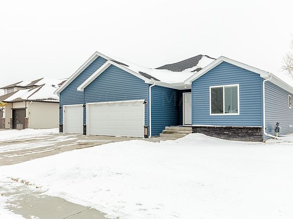 Fall in love with this custom 5 bed, 3 bath rambler in a convenient south Fargo location. This home features a stunning kitchen with custom cabinets, quartz counter tops, gas range & corner pantry. The master suite features a private bath with double sinks & spacious walk-in closet. A 2nd bedroom & laundry room complete the main floor. The fully finished basement provides 3 additional bedrooms & large family room with wet bar rough-in. The 3 stall garage includes hot/cold water, floor drain, built-in shelving/workbench & rough-in for gas heater. Enjoy the spacious backyard with firepit & patio surround.