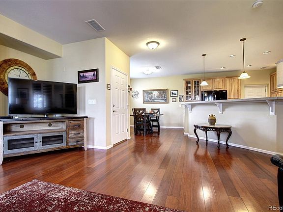 Great Ground level Condo. Central location. Close to restaurants, Shopping, minutes to 470. Open and bright End unit. Open concept great room with tons of lighting, wood floors, plantation shutters throughout. Large kitchen with tons of cabinets, huge island open to great room and eat in kitchen dining area. All the appliances, granite counters. overlooking large private fenced in patio area, for great outdoor entertaining. Bonus room can be a formal dining room, study, workout room it has sliding door out to patio. Large secondary bathroom, Laundry area with washer and dryer provided. Large master bedroom with private master 5 piece bathroom. Huge master closet walk in. Tandem two car garage attached. With the HOA, you get access to the community pool as well as all the Highlands Ranch Rec centers. Elementary: Sage Canyon Middle: Mountain Ridge High School: Mountain Vista Rental Applicatio Owner pays trash and water., you must have credit score of 700+, owner prefers no pets, must provide proof of income 3X the monthly rent, good rental history, no roommates.