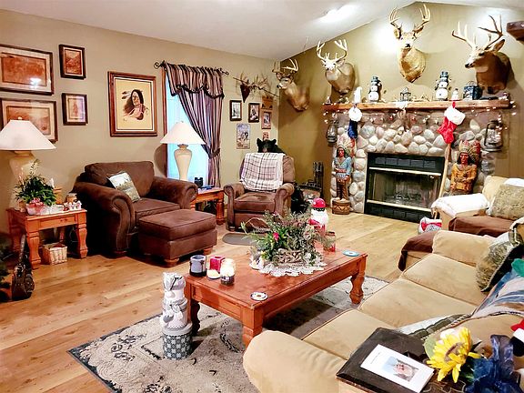 WELCOME HOME! You will fall in love as you drive up to this semi secluded 3 bedroom home. Step in from the front porch into a warm and spacious living room with vaulted ceiling and wood burning stone fireplace. Cozy up in front of the fireplace and enjoy your movie nights in front of the built in entertainment center. The open kitchen with breakfast bar just leads you right into the dining room with bay window. The master bedroom features a tray ceiling, walk in closet and master bath with jetted tub, double vanity and another walk in closet. Two other great sized bedrooms and another full bath complete this one story home. Outside you will be wow'd as you overlook the beautiful 1.6 acres - and keep an eye out for all the wildlife such as deer, turkey, coyote, fox. This property has it all - Dont let this one get away - Schedule your tour today!