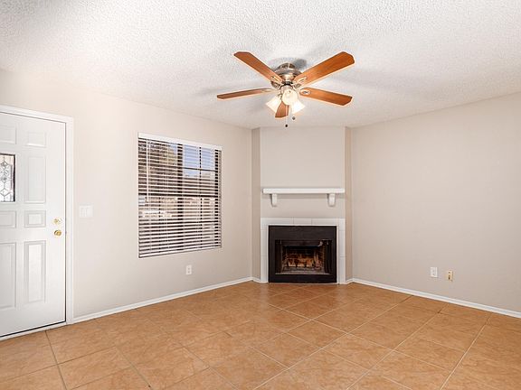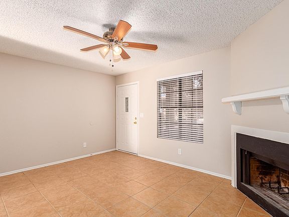 Recently painted interior. Great layout with cozy great room fireplace includes two bedrooms upstairs each with a bathroom, providing a great roommate set up. Each upstairs bathroom has been remodeled with new tile flooring. Kitchen features granite counter tops and looks out on a private patio which backs up to a greenbelt and close to the community pool, very desirable lot! A/C replaced in 2015 so it's not freon.