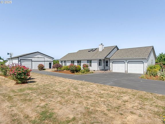 Discover comfort and tranquility in this inviting single level home. Set on 8.8 level acres, enjoy 1873 sqft of spacious living featuring three bedrooms and two bathrooms including a primary suite. Relax in the cozy living room with a woodstove and territorial views. Spacious kitchen offers plentiful storage, eating bar and is open to the dining room making an ideal space for gatherings. The property includes an income producing hazelnut orchard. Large shop and green house provide for endless possibilities for hobbies, gardening needs and storage. Conveniently located just 10 minutes from downtown McMinnville and Carlton, this home perfectly combines country living with city convenience.