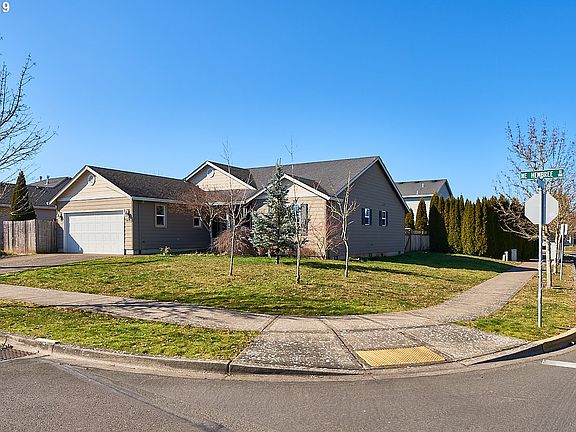 Charming single-level 4 Bd, 2.5 Ba home. Great neighborhood, desirable corner lot. Garage conversion includes half bath and two exterior entrances-Perfect for dual-living! Versatile open floor plan-vaulted ceilings, hardwood floors, and cherry wood cabinets throughout. Mature landscaping with 15 ft. arborvitae privacy screen, apple trees, and rose garden. Entry ramp and accessible travertine shower in master bath. Easy access to 99 & 47