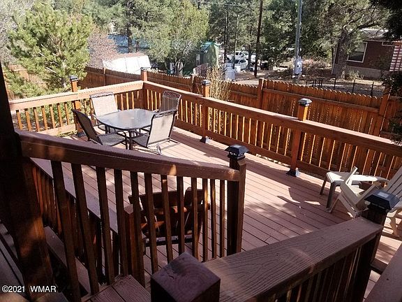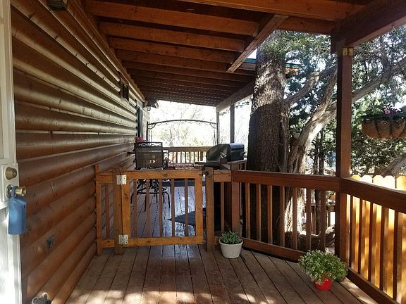 Well built/immaculate log sided cabin with a 2 level composite deck for entertaining, gorgeous stone gas fireplace, central heat and air, fenced in yard for pets and privacy, large walk-in closets in both bedrooms, tongue and groove vaulted ceiling and arcadia doors from main bedroom to the upper deck. This is a must see!