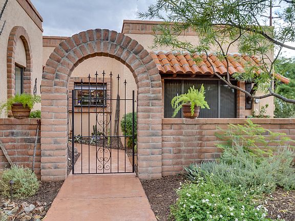 Beautiful and excellently maintained end townhome bordering common area and acres of open land all on a hillside lot. Kitchen has; rustic knotty Alder cabinets, granite ctps, tiled bsplash, microwave/conv oven, pull-out shelves. Great Room (with an outstanding view), has large built-in bookcase with puck lights. Rough sawn beams. Wood look tiled floors Mstr Bdrm has a full mountain view, walk-in closet. Guest Bedroom has very deep closets allowing for office desk set-up or crafts. Wrap-around porch. Mountain views of the expansive Santa Rita range. The south facing patio has solar screens, shades and a ceiling fan. Pavers and 3 fountains are the foundation of the beautiful landscaping. The extended garage is, both sides, lined with cabinets. Must see! Furniture avail SBOS