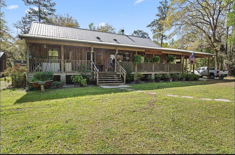 YOUR PRIVATE WEKIVA RIVER RETREAT AWAITS!! Invest in your own secluded paradise on the pristine Wekiva River in Levy County, Florida, where peace and tranquility embrace you the moment you arrive. With over 700 feet of private river frontage, this well-maintained homestead offers the perfect blend of natural beauty and modern comforts. Step inside to an inviting open floor plan featuring a vaulted ceiling, cozy wood-burning fireplace (with a convenient gas starter), and a spacious island kitchen with custom wood cabinets and a dining area adorned with durable luxury vinyl plank flooring. Natural light fills the space thanks to thoughtfully placed solar tubes, creating a warm and welcoming atmosphere. Primary suite has french doors to access the screened back porch and the closets are lined with cedar. Sip your morning coffee on the covered front porch or unwind in the rear screened porch, complete with a wood-burning fireplace—ideal for cool evenings. A convenient lift system helps bring in heavy items or assists those needing accessibility. It has an expansive carport, perfect for entertaining, or completing large projects, or additional parking. A 28 x 50 Pole Barn with enclosed storage for yard equipment, boats and outdoor gear and separate utility shed for other items you want to keep handy. Well pump is covered and protected and has a water filtration system to ensure fresh, clean water. Immerse yourself in the sights and sounds of nature—kayak or fish along the Wekiva River, watch wildlife from your backyard, or simply relax in your own private haven. Call today and schedule a private tour of this rare riverfront retreat, it will not disappoint! Would make a great AirBNB! Cannot see much from the road, please do not drive onto the property without an appt. PLEASE USE THESE GPS COORDINATES. https://maps.app.goo.gl/sz6brbpg5LrCuP7X8?g_st=im