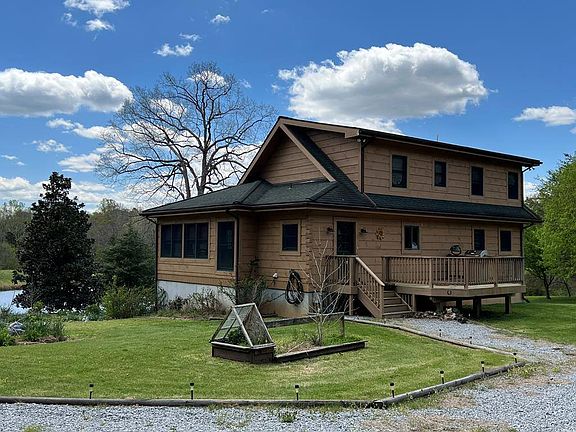 If you're looking for peace and quiet within a natural environment with privacy of your own, this is it! This uniquely incredible square cut log home sits on 20 beautiful acres, surrounded on two sides by the Meherrin River, and includes your stocked 3/4-acre pond in the front yard! Everything about this property will take you back to the good ole days: from the natural tongue & groove wood finished exterior walls and open, exposed timber framing in the great room, to the solid knotty pine wood floors, all wood windows, walk-in closet space and more. The spacious upstairs master ensuite features a bear claw soaker tub and double walk-in closets. This property offers tranquility in a country setting, with an inviting, full-length screened porch for morning coffee on the roadside overlooking the pond, and hardwood, peach and apple trees and shrubs spaced out nicely around the grounds.