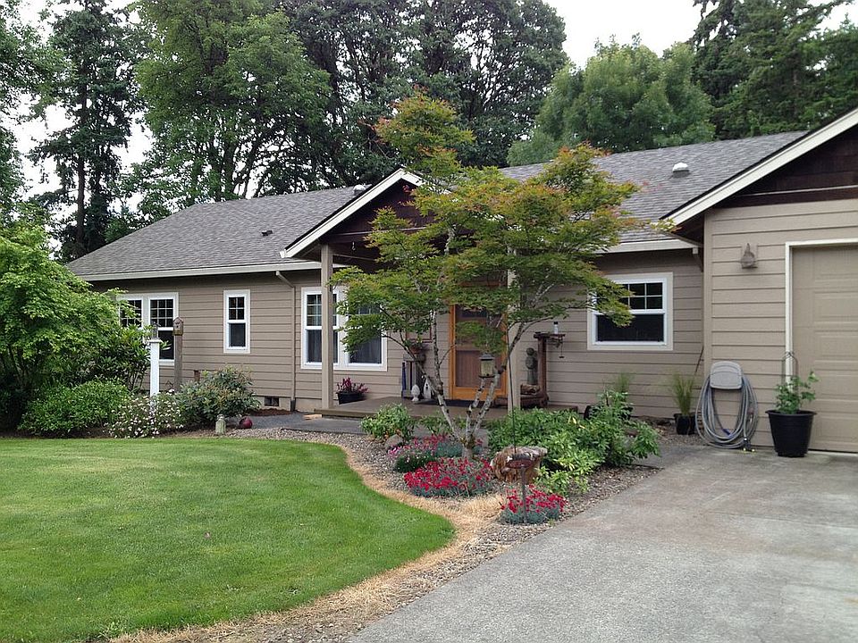 Custom Ranch style home on beautiful landscaped two acre parcel with paved driveway, two large shops, detached home office with loft, a covered deck off the master suite, large rear patio with covered BBQ and covered porch and a large fire pit area down by the seasonal creek. The kitchen has Sub-Zero and Wolf appliances, carrara marble counters and backsplash and a custom rolling island with leathered black granite top. The laundry has built ins above and below with an 8' Caesar-stone counter for folding laundry. Beautiful oak hardwood floors, cherry cabinets, CVG Douglas fir doors and trim throughout. The large master suite has a huge walk in shower with a rain shower head, and a large custom walk in closet.