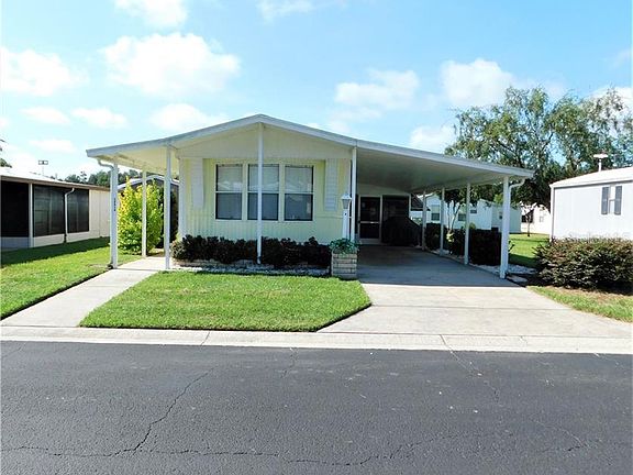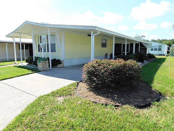 Looking for a pet friendly Florida neighborhood? Come enjoy the sunshine! Exceptional single wide home in South Hill 55+ community where you own your land! Located in a desirable area close to pool with a low HOA fee of $360/year. This semi-furnished 2br/2ba/FL room/double carport shows off laminate flooring in kitchen, high ceilings, open concept, updated kitchen cabinets, eat-in kitchen, and offers the split bedroom plan. Kitchen updates include: flooring, stainless steel sink, appliances, and counter tops. Many updates have been completed on this incredible home: membrane roof, A/C system, foundation strapping, step-in shower in master, and much more! The large patio/Florida room, workshop, inside laundry, exceptional kitchen, ceiling fans, all add atmosphere to this home. Beautiful design upgrades showcase a desirable OPEN FLOOR PLAN that flows perfectly throughout. Don't forget kitchen offers refrigerator with ice maker/range/dishwasher/microwave. The master bedroom retreat is located at the back of the home, ceiling fan, double closet, built-in shelves, nicely painted, carpeting, and multi-room master bathroom. The second bedroom is bright and offers ample closet space with updated built-in shelves. The outdoor living space: painted driveway/patio, many plants and flowers, and decorative stone landscaping. Call today before it is gone!