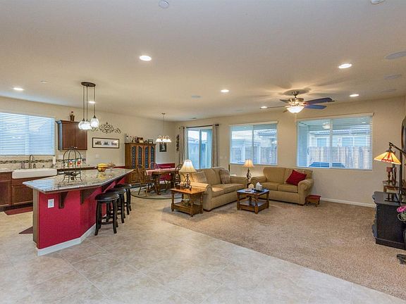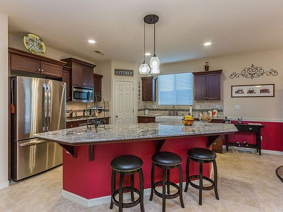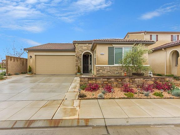 Beautiful Leo Wilson home on a corner lot. This home has many upgrades and is in move-in condition. The kitchen has soft close cabinets and a farm sink as well as an organized pantry. The family room has a 60 inch fan and surround sound speakers are throughout the house and patio. The bedrooms have large fans. The master has an upgraded step in shower as well as a professionally organized master closet. The entry boasts beautiful stained glass windows. The home is beautifully landscaped with drip irrigation. An extra patio cover has been added on the home. The backyard is easy maintenance with concrete side yards and beautiful stone work extended from the patio. Home is move in condition. Pre-wired for alarm/solar.
