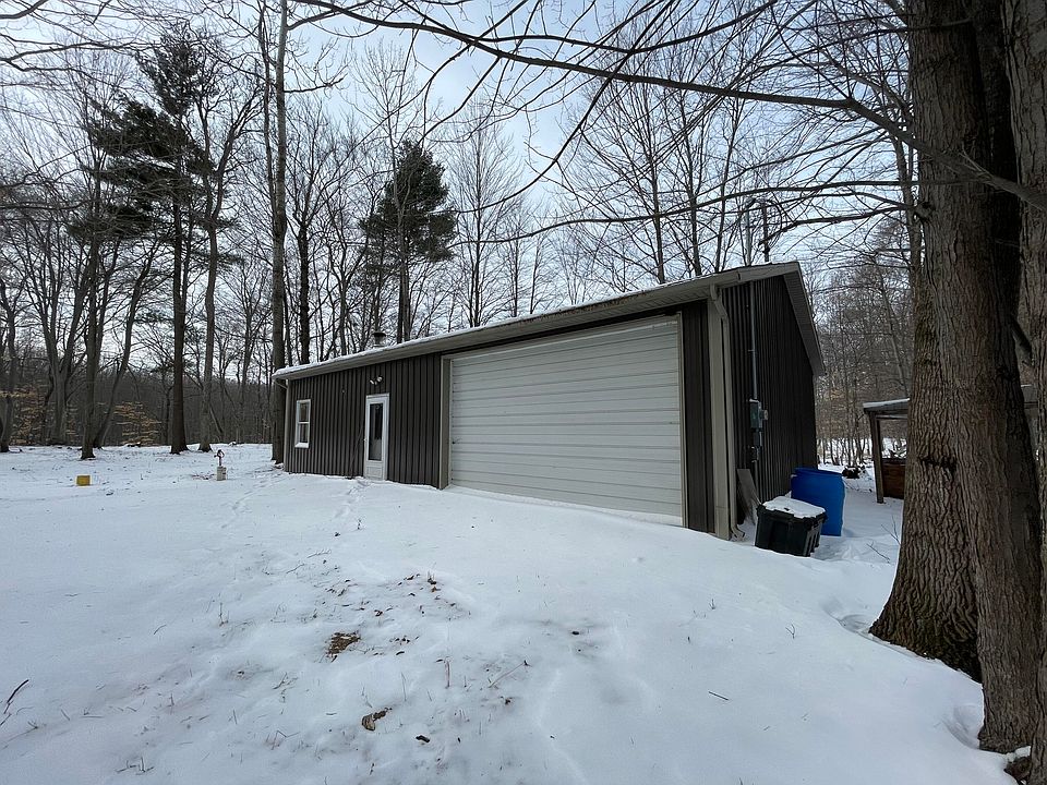 This property features a 30x40 pole barn cabin with living quarters inside. Including 3 bedrooms, kitchen, great room, bathroom, electric, well, and septic. The cabin is perched on a ridge overlooking Fish Creek, which is a trout fishing gold mine.