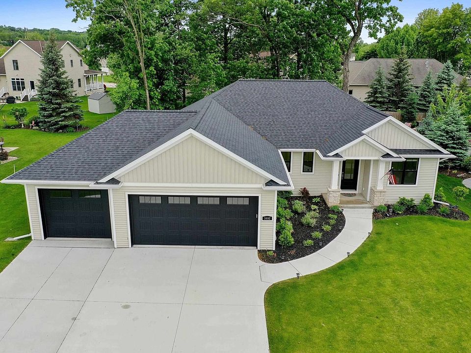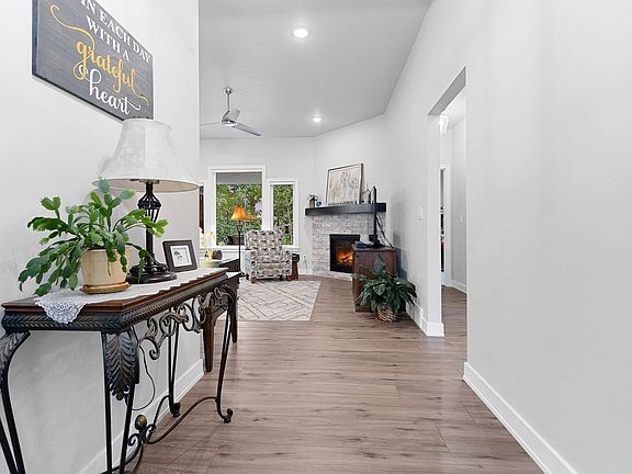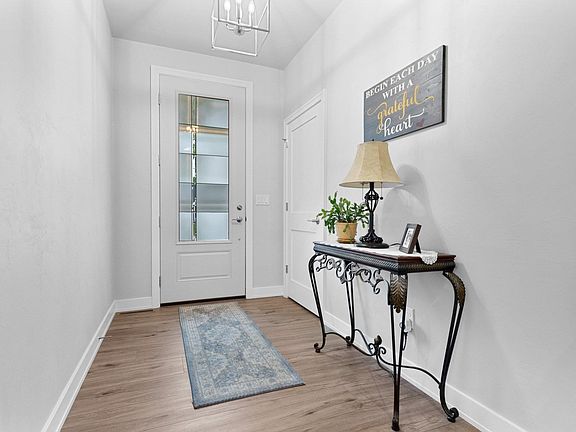 Better than new 2 yr old former Showcase home by Bay Area Builders! Split bedroom open concept ranch offers style and function! kitchen features corner pantry, huge island, granite counters.tile backsplash,under cabinet lighting,SS chimney range hood, & includes all SS appliances in the kitchen! LVP flooring throughout the main living area adorned by a stack stone corner FP, 10' ceiling in LR, and silhouette window coverings overlooking the covered back porch and landscaped & treelined yard! Primary bedroom features large walk-in closet, 9' ceilings and beautiful bathroom w/Tile shower with glass door and double vanity featuring Cambria quartz counter top! First Floor laundry includes W/D. Office nook w/built-in desk! Back entry sports bench w/ hooks! Offers to be reviewed 6/14/22 6pm