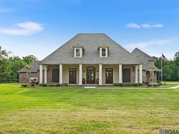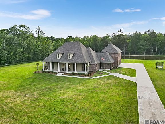 Nestled on 4.52 acres of meticulously manicured grounds, this exquisite estate offers unparalleled luxury & functionality. Boasting a plethora of amenities, this home is the epitome of upscale living. Upon arrival, you'll be greeted by an electric gate leading to your private sanctuary. The meticulously maintained landscaping sets the tone for the elegance that awaits. Inside, you'll immediately notice the attention to detail & quality craftsmanship that defines this home. For peace of mind, a 60kw water-cooled whole-home generator powered by natural gas ensures that you'll never be left in the dark. A whole-home water filtration system guarantees pure, crystal-clear water at every turn. Entertaining is a breeze thanks to the gourmet kitchen equipped with top-of-the-line appliances, including two dishwashers, two refrigerator spaces, and two ice makers. The stunning Patagonia granite countertops complement the Cypress cabinets, creating a space that's as beautiful as it is functional. With five bedrooms and seven baths, including his and hers master bathrooms, there's no shortage of space for family & guests. Two laundry rooms, one upstairs and one downstairs, offer added convenience. The entertainment options are endless with a game room featuring a pool table & a spacious living room upstairs. Outdoors, you'll find a UV gunite pool with a hot tub, fishing dock on the stocked pond, and an outdoor kitchen with a grill, mini-fridge, & ice maker. For added comfort & peace of mind, three Aerus air scrubbers utilize NASA technology to purify the air & surfaces throughout the home. Three fireplaces, including one real wood-burning fireplace outside, provide cozy ambiance on cooler evenings. Additional features include reclaimed Heart pine flooring, travertine tile throughout the back porch area, & a central vacuum system with toe kick sweepers. Plus, with recent updates including interior & exterior painting, landscape updates, & soft washing, this home is move in ready.